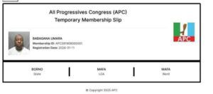 The All Progressives Congress (APC) has inaugurated its e-membership registration exercise in Borno State as part of efforts to digitalise its membership database and strengthen internal democracy.